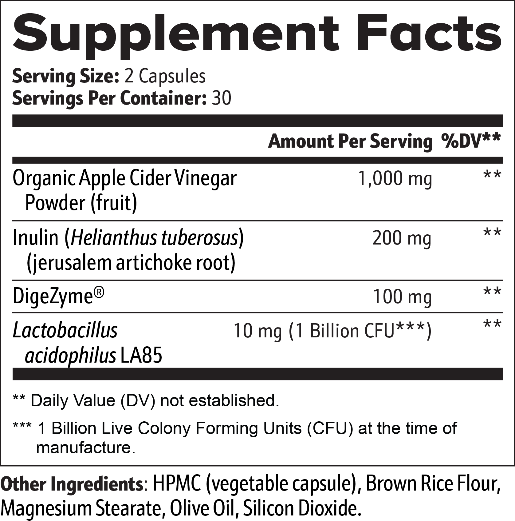 Contains apple cider vinegar powder to support a balanced gut environment.